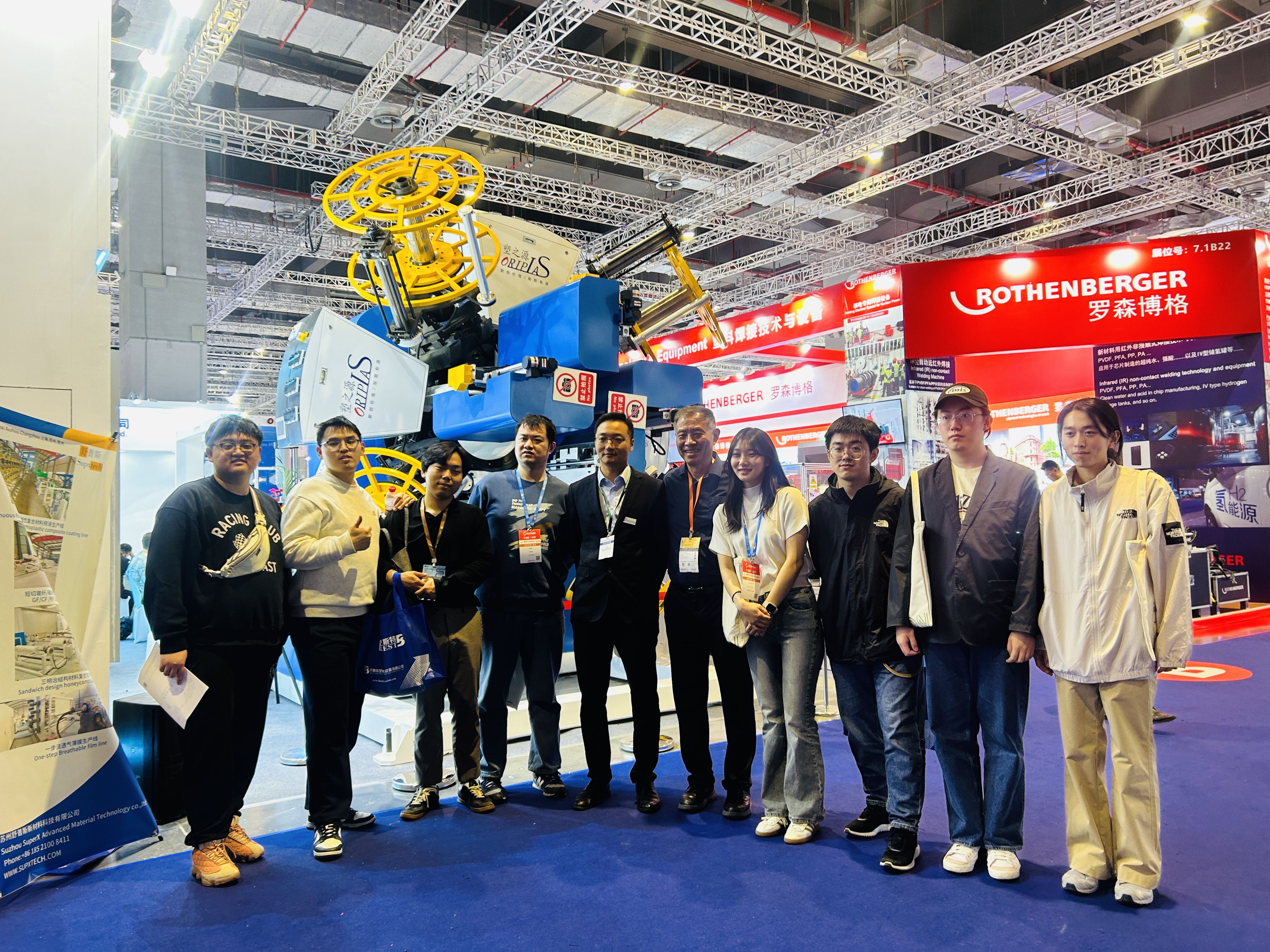 展会期间,塑之源最新一代连续纤维(玻璃纤维、玄武岩纤维、芳纶、PET、钢丝带等)预浸带增强热塑性复合管(CFRTP/TCP)缠绕设备与HDPE1600超厚壁管模具,配套塑之源第四代120/40高效节能挤出机的创新工艺和制造技术,受到了在场观众的一致好评,完美展示了塑之源的技术优势。塑之源工作人员热情的为每一位观众进行详细的华体会在线官网-华体会(中国)讲解与亮点讲解。