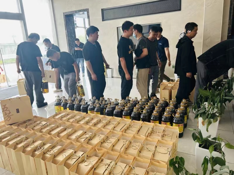 福利发放现场,每位员工都有条不紊地排队领取,发放现场不时传出阵阵欢笑声,处处洋溢着温馨和谐的气氛。
